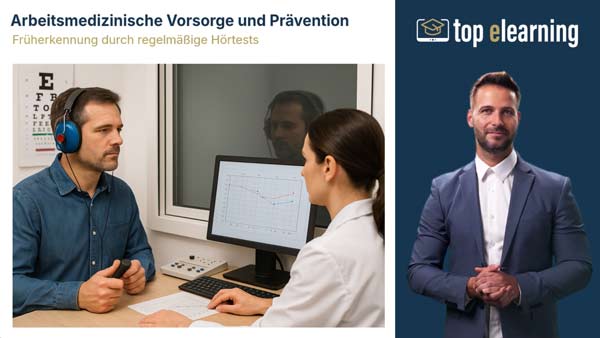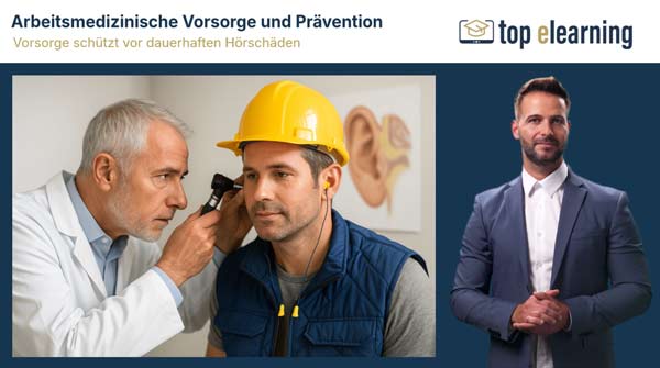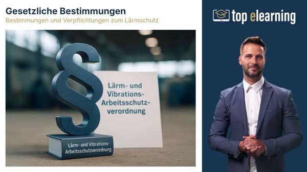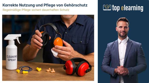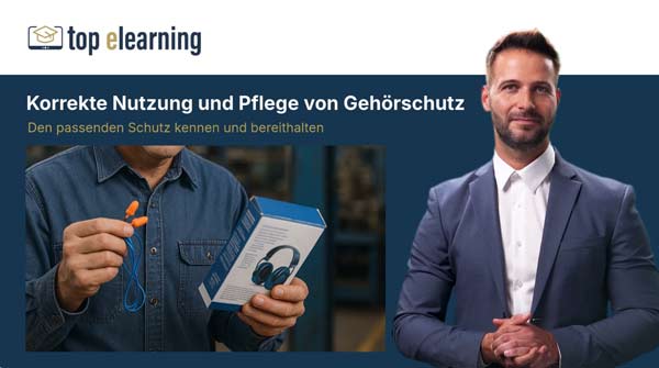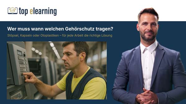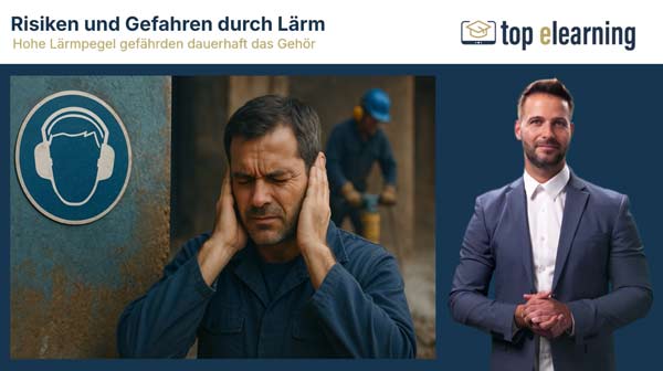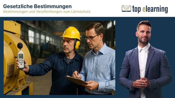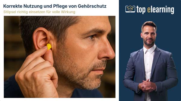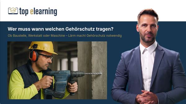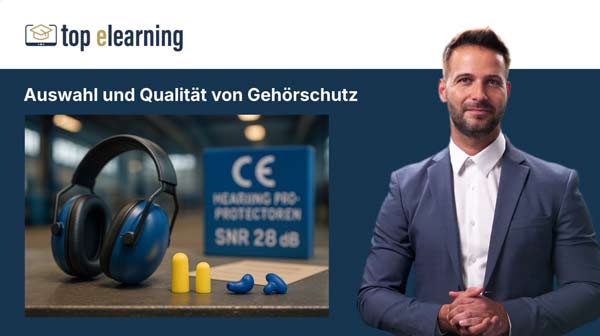 Der Kurs „Lärmschutz am Arbeitsplatz“ von top elearning vermittelt praxisnahes Wissen rund um Lärmbelastungen, gesundheitliche Risiken und wirksame Schutzmaßnahmen. Er richtet sich an Mitarbeitende aus Produktion, Logistik, Bau, Handwerk sowie anderen lärmintensiven Bereichen und eignet sich ideal für Pflichtunterweisungen nach § 12 ArbSchG.